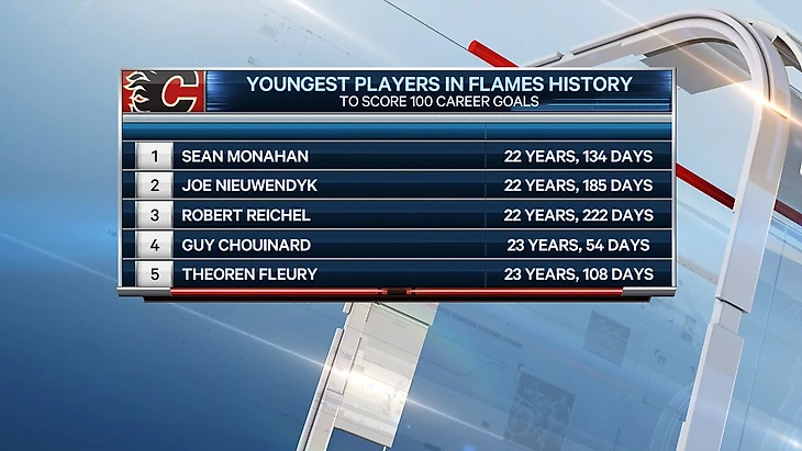Кроме того, он стал самым молодым игроком в истории «Калгари», забившим 100 голов (22 года 134 дня), опередив Джо Нуиндайка (22 года 185 дней).