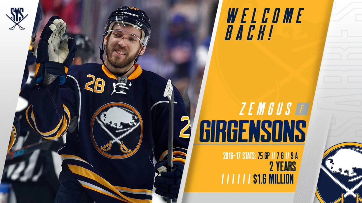 «Баффало» объявил о подписании нового контракта с форвардом Земгусом Гиргенсонсом.