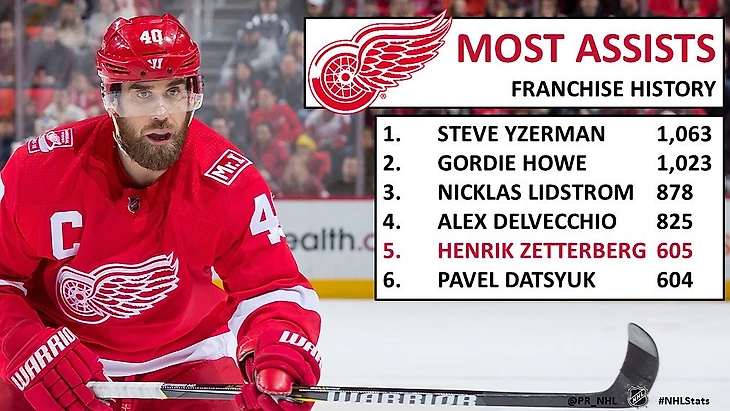НХЛ. Зеттерберг вышел на 5-е место по передачам в истории «Детройта», обойдя Дацюка