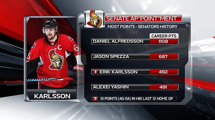 НХЛ. Эрик Карлссон вышел на 3-е место по очкам в истории «Оттавы», обойдя Яшина