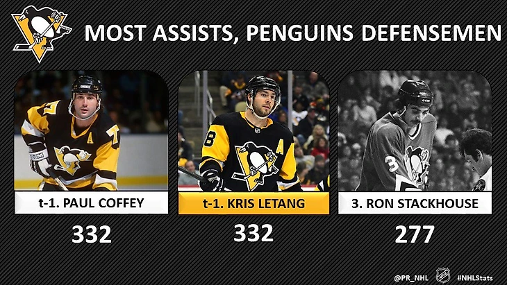 НХЛ. Летанг отдал 332-ю голевую передачу и повторил рекорд Коффи для защитников «Питтсбурга»