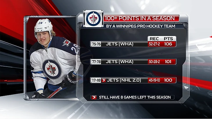 Также они превзошли достижения старых «Джетс», которые набирали 100 или более очков только во время выступлений в ВХА.