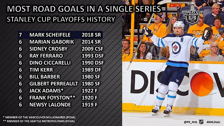 Это новый рекорд НХЛ – ранее в выездных матчах одной серии игрокам (среди которых Сидни Кросби, Мариан Габорик, Дино Сиссарелли, Жильбер Перро, Ньюси Лалонд и другие) удавалось забить максимум 6 голов.