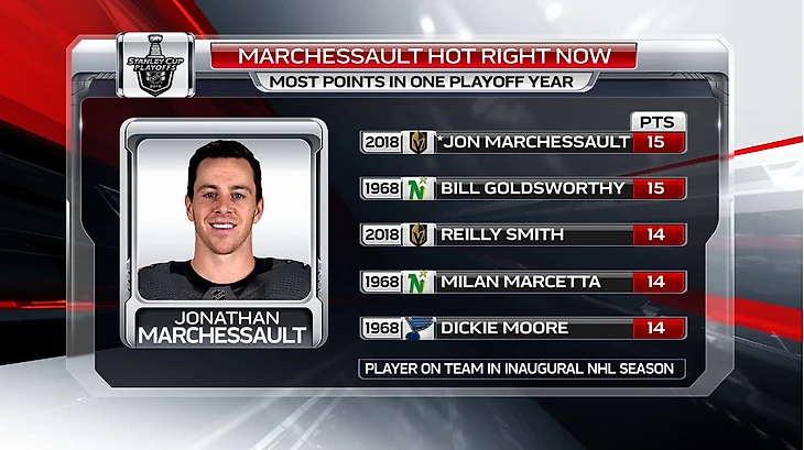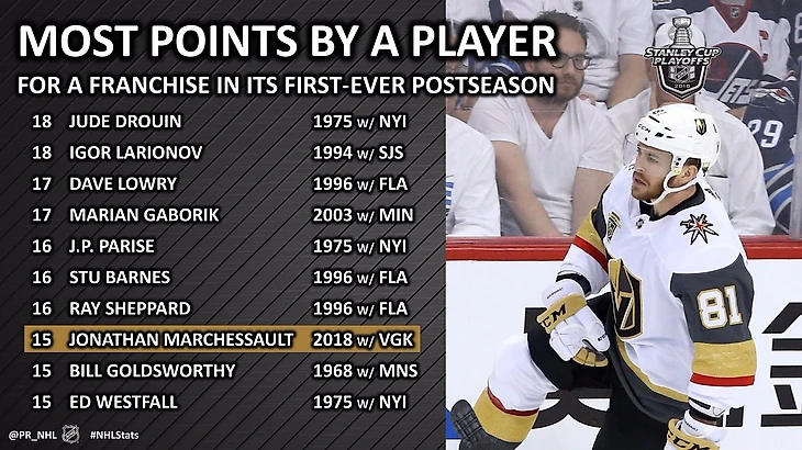 Форвард «Вегаса» Джонатан Маршессо сделал дубль во втором матче финала Западной конференции Кубка Стэнли против «Виннипега» (3:1, 1-1).