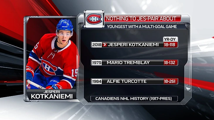 НХЛ. Котканиеми забил первые голы в лиге и стал самым молодым автором дубля в истории «Монреаля»