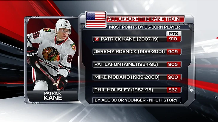 В 56 матчах сезона на счету хоккеиста 82 (33+49) балла. В гонке бомбардиров Кэйн сохраняет 2-е место с отставанием от лидера – Никиты Кучерова из «Тампы» – на 6 очков.