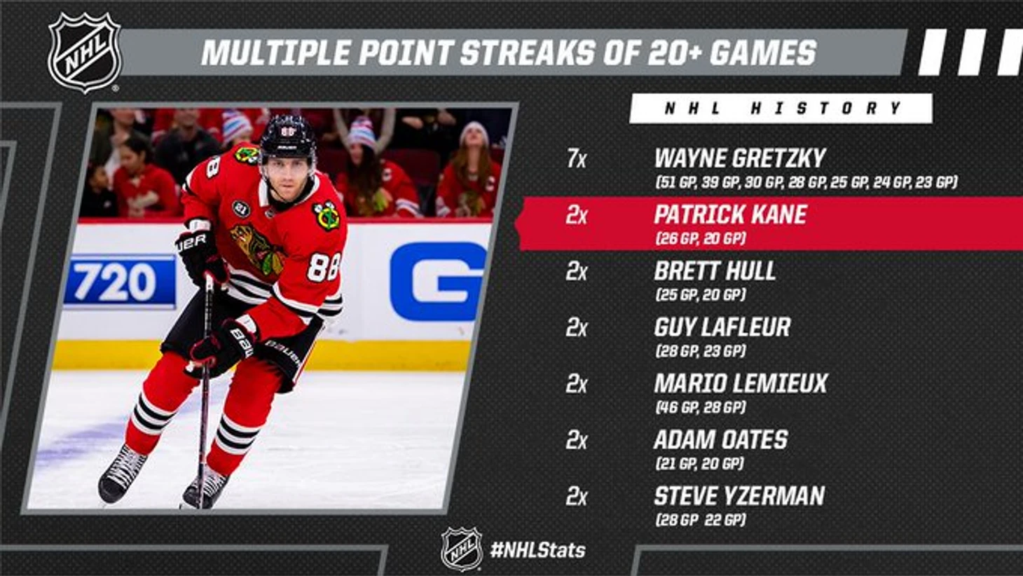 НХЛ. Патрик Кэйн – 7-й игрок в истории с двумя результативными сериями из 20+ матчей