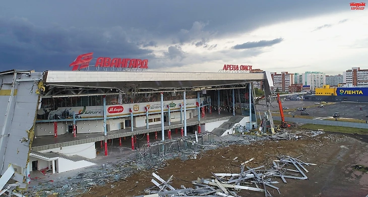 Внутреннюю часть арены можно увидеть с улицы. В 2018 году «Арену-Омск» признали аварийным зданием.