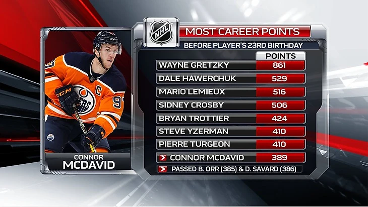 Макдэвид вышел на 8-е место в истории НХЛ по очкам, набранным в возрасте до 23 лет
