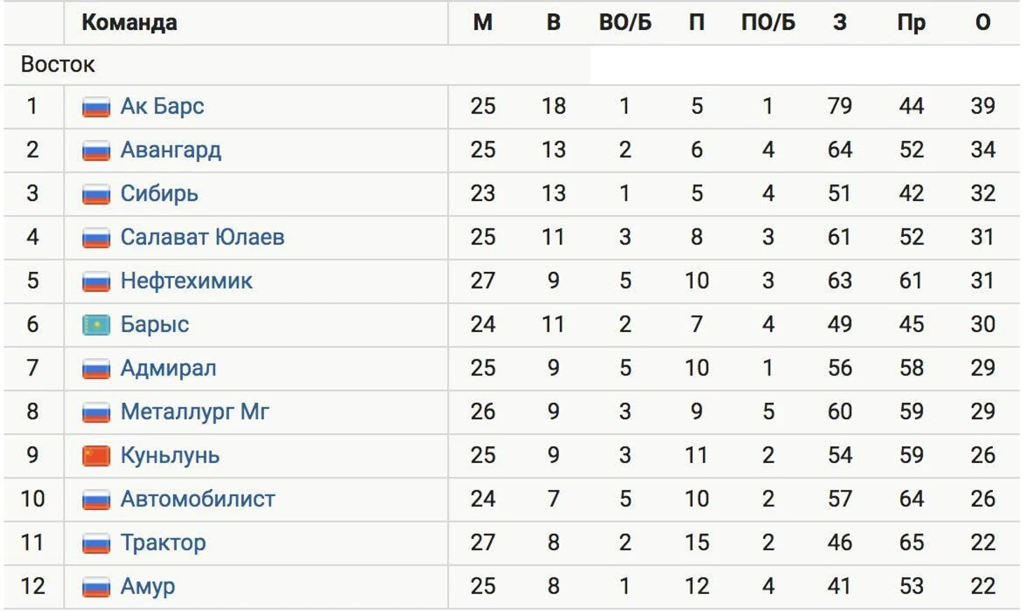 Отметим, что восьмая команда Востока – «Магнитка» – имеет в активе 29 очков. Шестой клуб Запада – «Торпедо» – набрал те же 29 баллов.