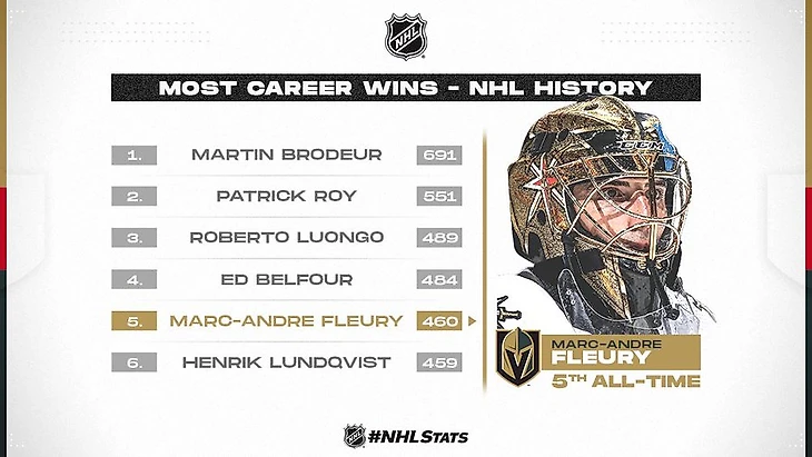 Флери одержал 460-ю победу и вышел на 5-е место в истории НХЛ, обойдя Лундквиста