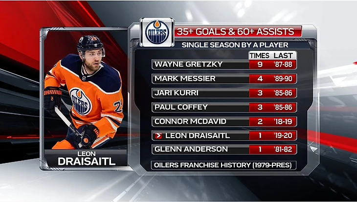Драйзайтль – 7-й хоккеист в истории «Эдмонтона» с 35+ голами и 60+ ассистами за сезон