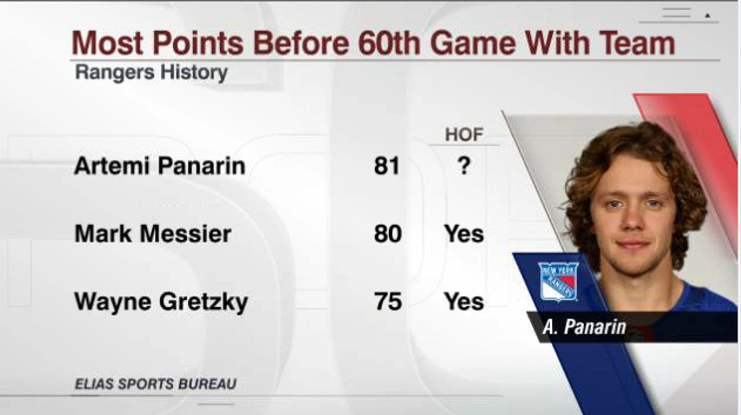 Панарин побил рекорд Мессье, набрав 81 очко в первых 59 матчах за «Рейнджерс»