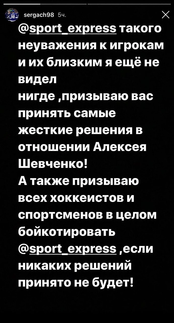 А также призываю всех хоккеистов и спортсменов в целом бойкотировать «Спорт-Экспресс», если никаких решений принято не будет!