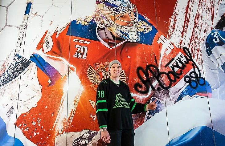 Воспитанник «Салавата Юлаева» побывал на «Уфа-Арене», оставив автограф в фойе стадиона, встретился с руководителями команды, а также посетил тренировки молодых хоккеистов уфимского клуба.