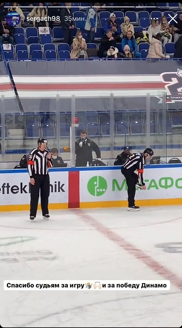 «Спасибо судьям за игру. И за победу «Динамо», – написал хоккеист.