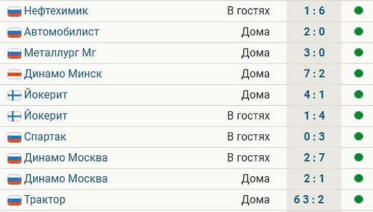 Команда тренера Дмитрия Квартальнова одержала 10-ю победу подряд.