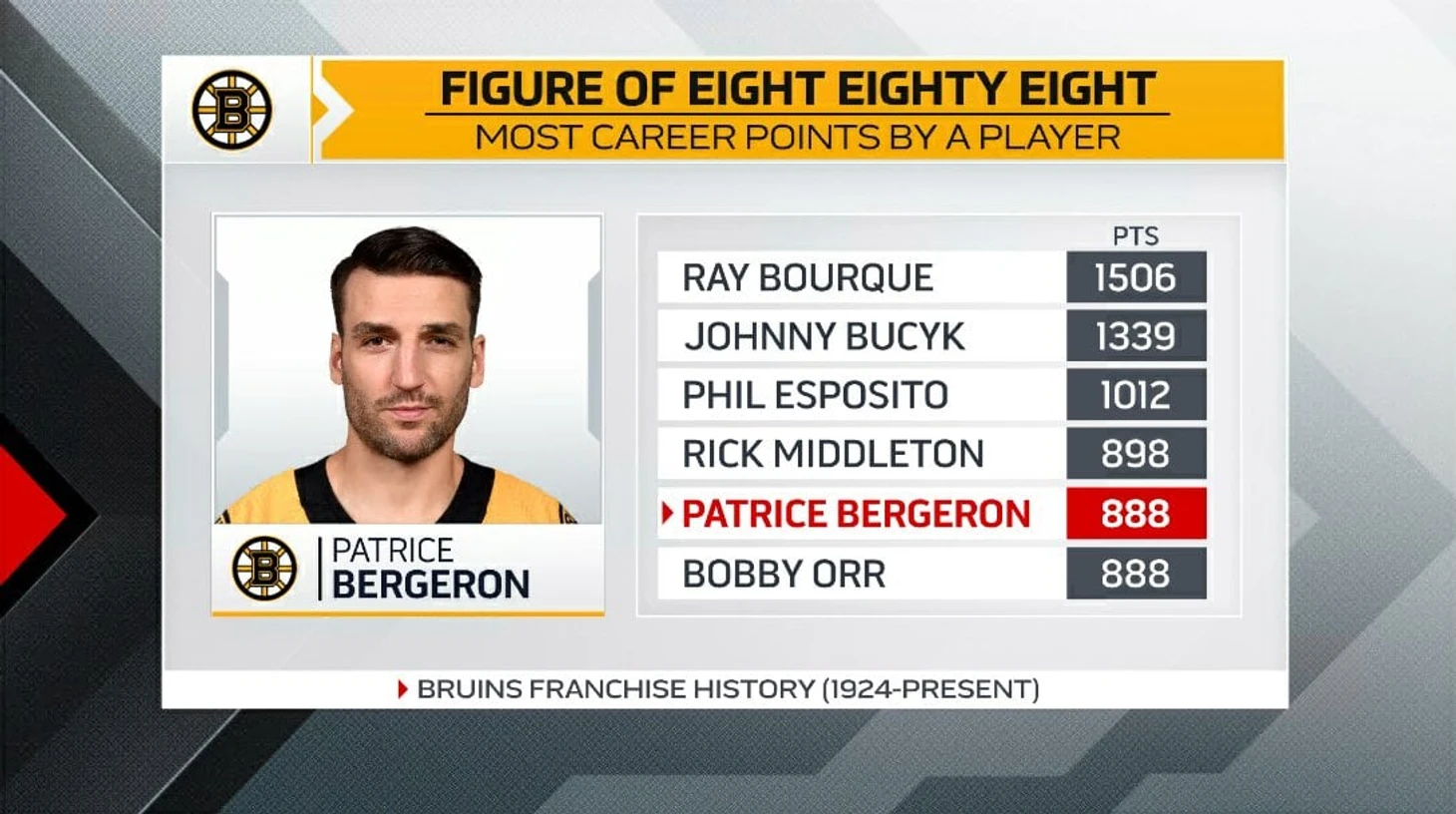 Бержерон повторил достижение Бобби Орра и вышел на 5-е место по очкам в истории клуба.