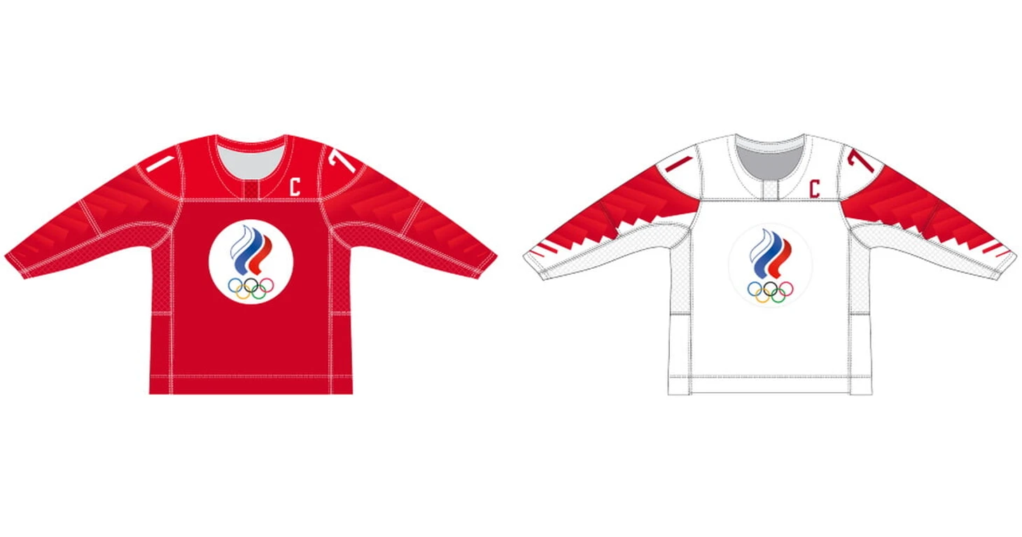 На свитере отсутствуют герб, флаг и другие национальные символы РФ в связи с решением Спортивного арбитражного суда в Лозанне (CAS) по спору Всемирного антидопингового агентства (WADA) и Российского антидопингового агентства (РУСАДА).