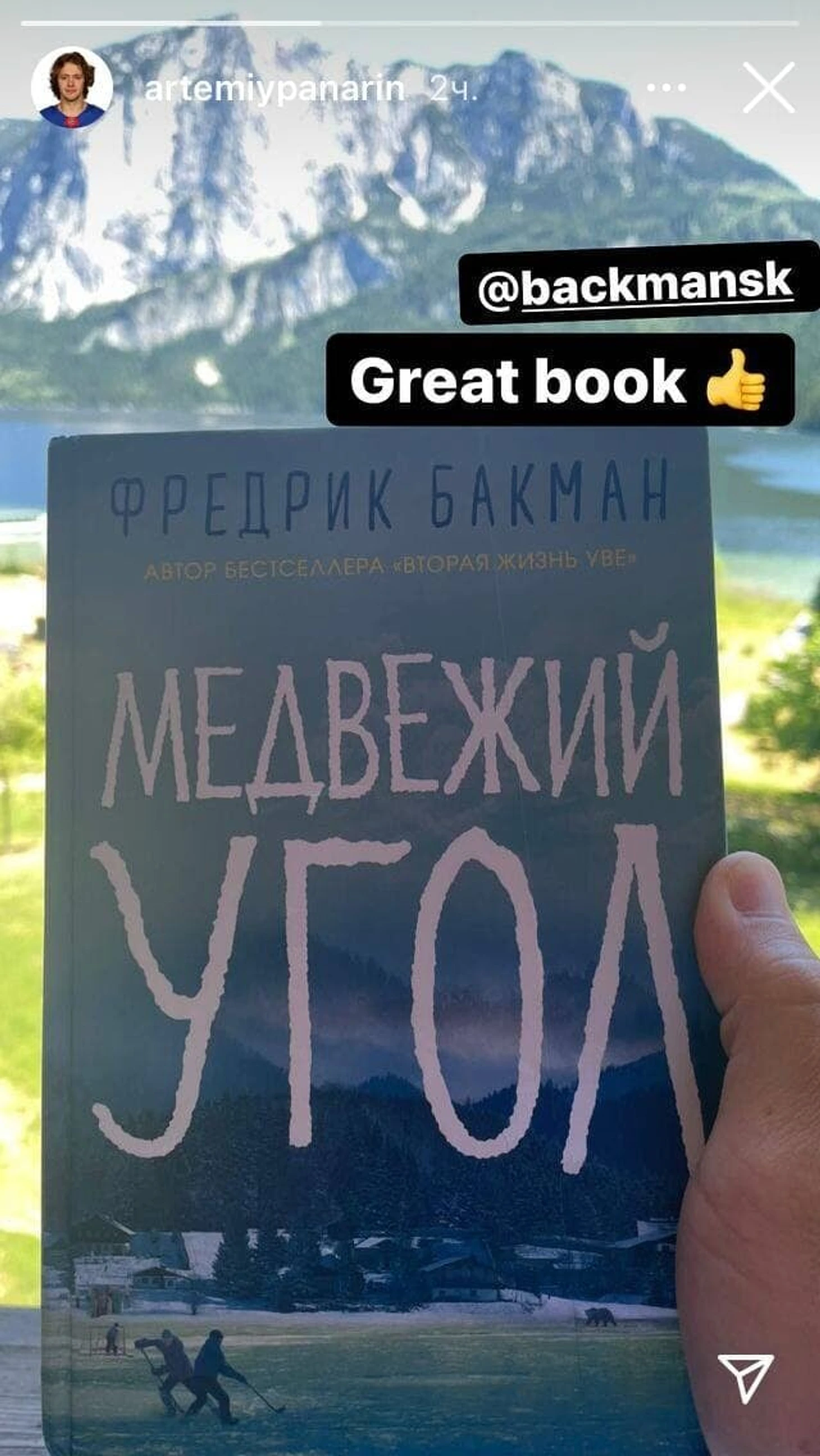 Хоккеист опубликовал сторис с книгой «Медвежий угол» – это роман о хоккее и хоккейном клубе из вымышленного шведского города Бьорнстад.