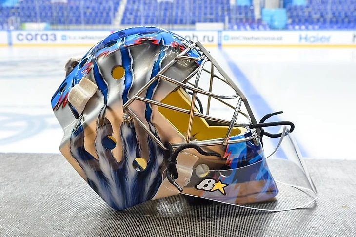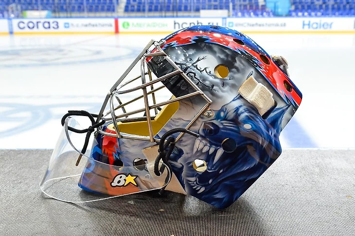 Вратарь «Нефтехимика» Иванников представил новый шлем с изображением волка