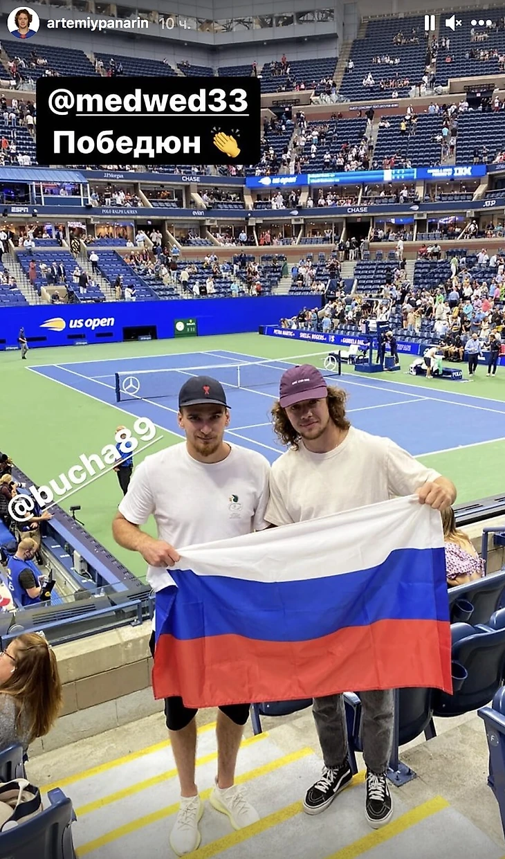 Российские хоккеисты Артемий Панарин и Павел Бучневич поддержали теннисиста Даниила Медведева в матче 1/8 финала US Open против Дэна Эванса (6:3, 6:4, 6:3).