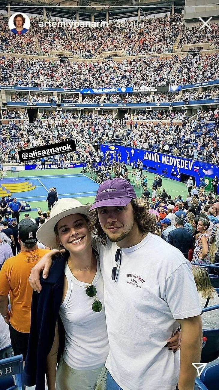 Панарин и Алиса Знарок посетили финал US Open между Медведевым и Джоковичем