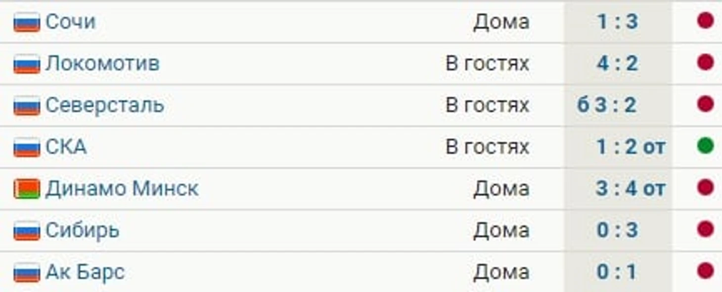 Команда тренера Бориса Миронова проиграла шесть из семи последних игр. На этом промежутке красно-белые обыграли СКА (2:1 ОТ).