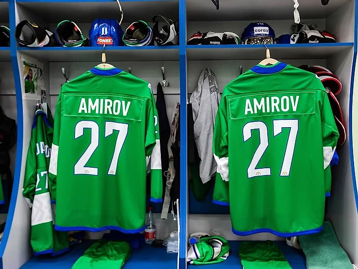 Игроки «Салавата Юлаева» вышли на раскатку в свитерах с фамилией Родиона Амирова.