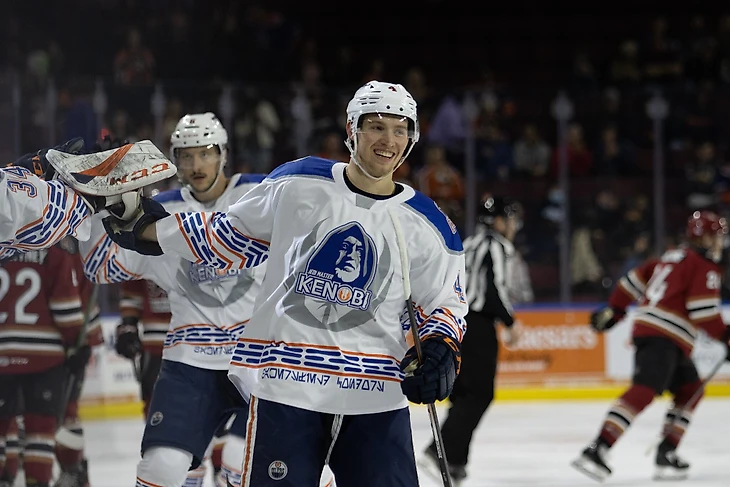 Изображение персонажа из вселенной «Звездных войн» в исполнении актера Алека Гиннесса и надпись «Мастер-джедай Кеноби» были размещены на игровых джерси вместо логотипа фарм-клуба «Эдмонтона».