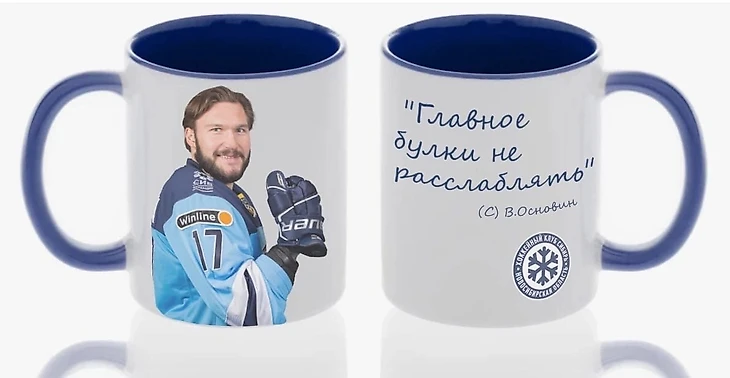 На передней стороне кружки, картинка с которой была опубликована в группе новосибирского клуба, изображен сам форвард, а на обратной нанесена его цитата: «Главное булки не расслаблять».