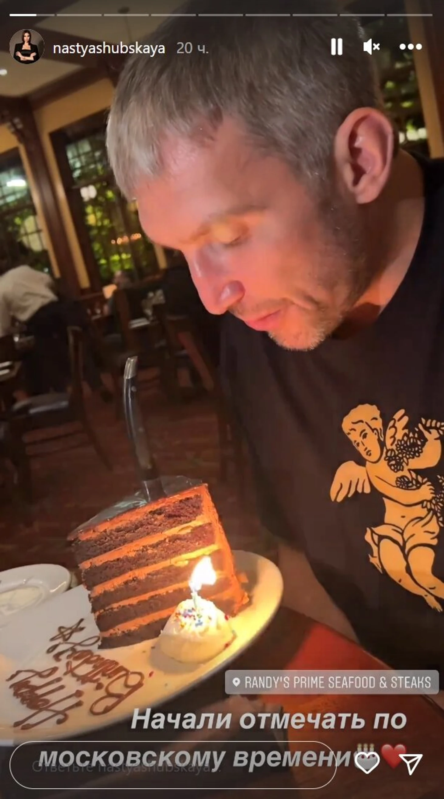 Анастасия Шубская выложила запись из американского ресторана Randy’s Prime Seafood and Steaks, на которой форвард «Вашингтона» задувает свечу на десерте.