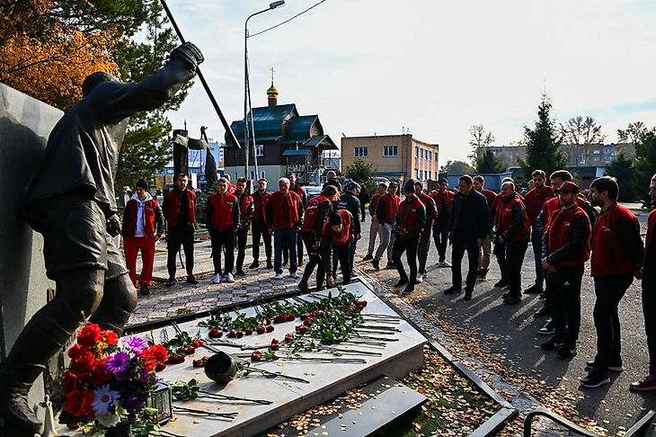 Игроки «Авангарда» возложили цветы на могилу Черепанова: «Свети нам – и набирай очки за небесную команду. Мы никогда не забудем тебя»