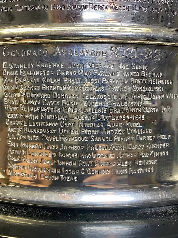 Имена игроков, тренеров и менеджеров «Колорадо» были нанесены на Кубок Стэнли.