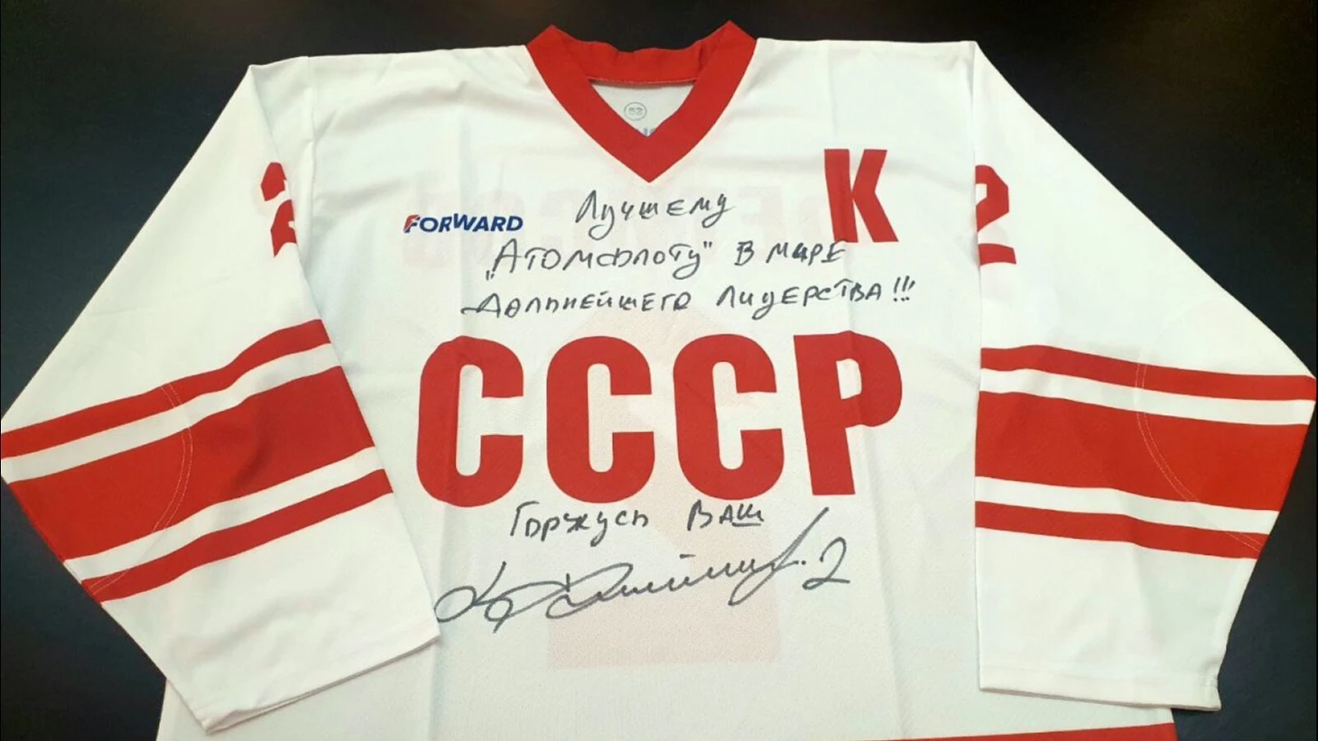 Фетисов подарил Атомфлоту свитер сборной СССР с автографом: «Лучшему в мире – дальнейшего лидерства. Горжусь вами»