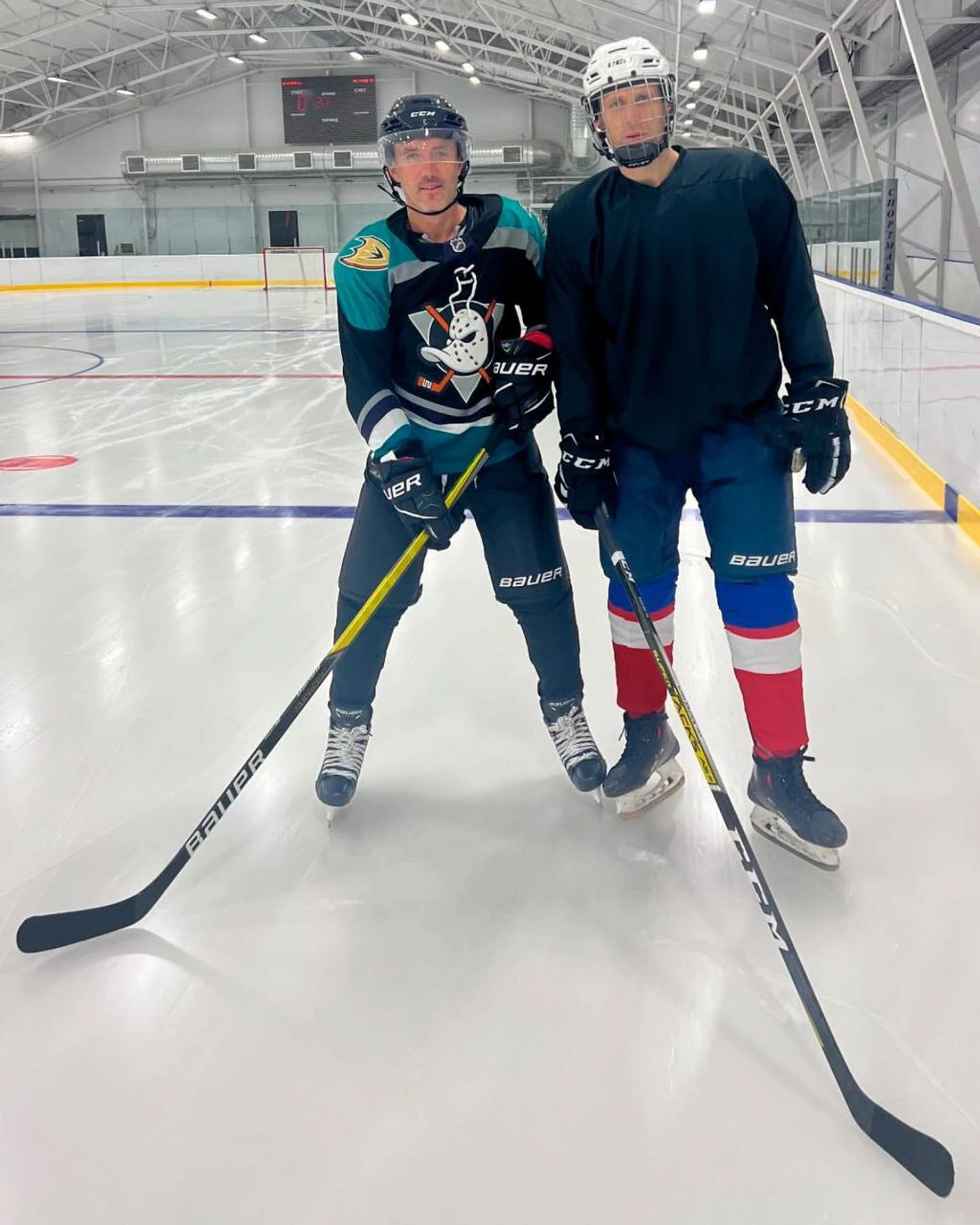 Бывшие футболисты сборной России сфотографировались в хоккейной форме. Жирков появился на льду в форме команды «Анахайм».