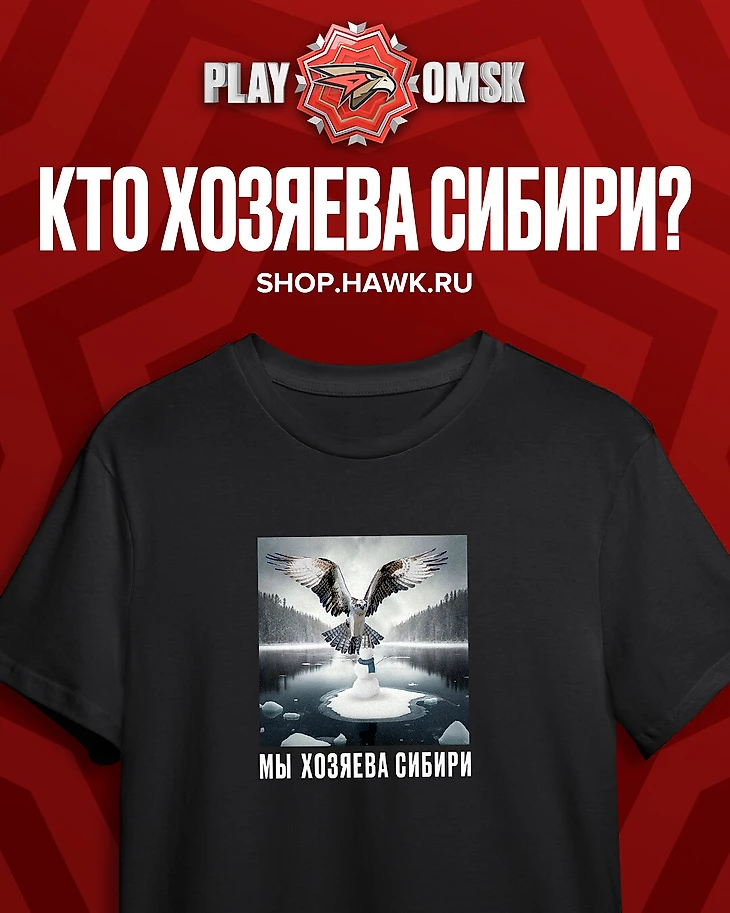 «Авангард» запустил предзаказ футболок «Мы хозяева Сибири», где ястреб налетает на снеговика, после победы в серии над «Сибирью»