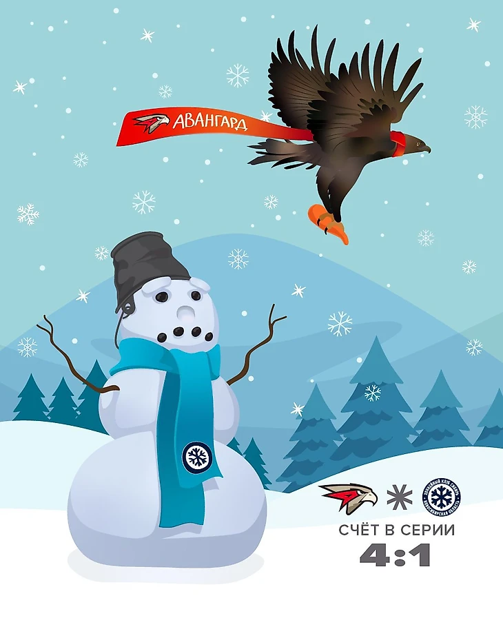 Снеговик и ястреб – это отсылка к прозвищам клуба. «Авангард» выиграл 4-1 в серии.