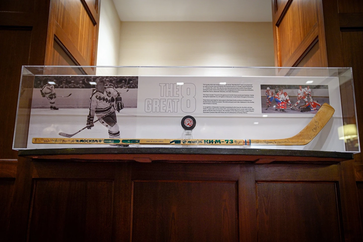 Овечкину подарили клюшку с автографами сборной СССР и шайбу, которой Горди Хоу забил первый гол на Суперсерии-1974
