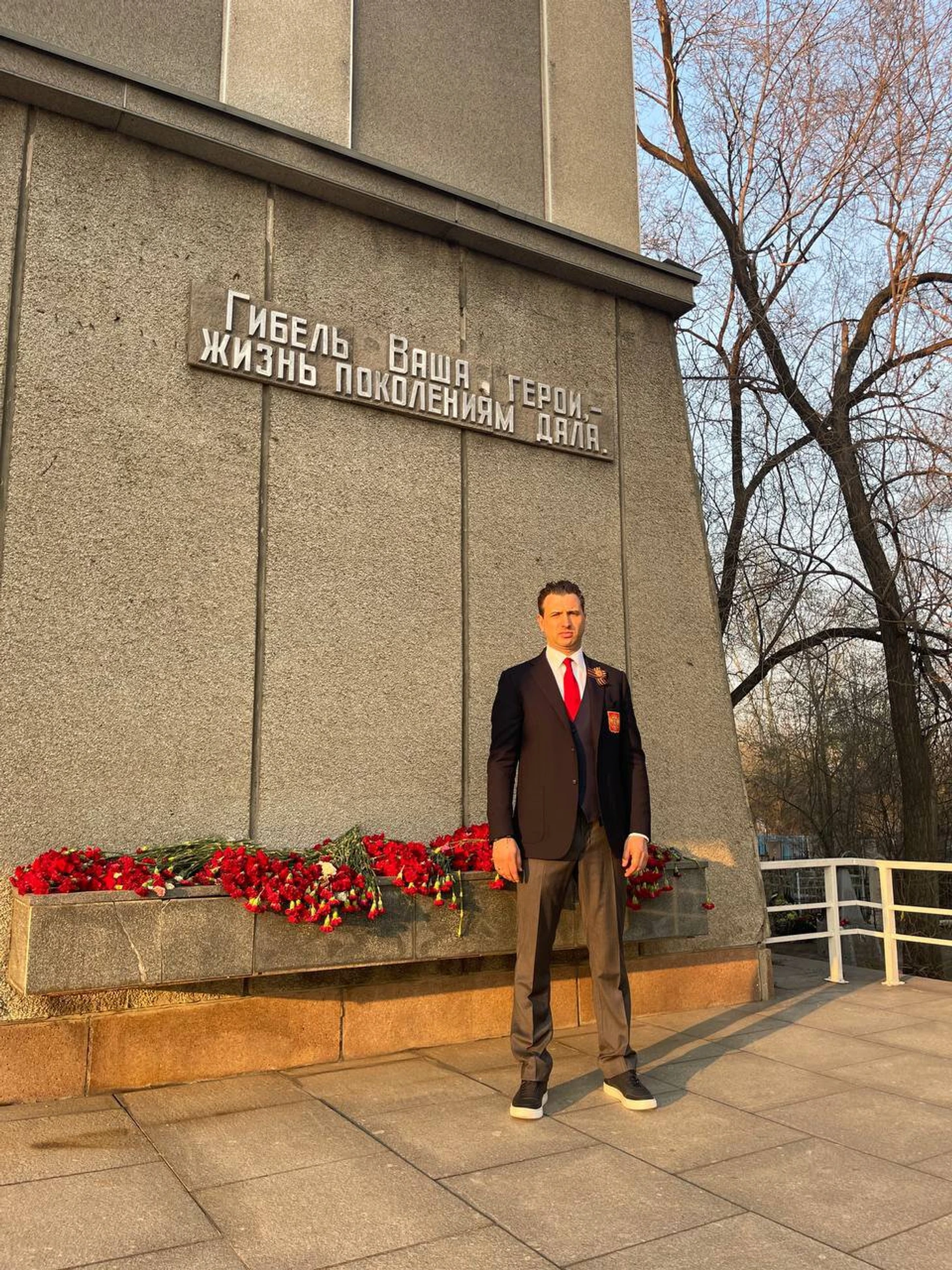 А вечером пошли пешком на Мемориал победы! Возложили цветы к памятнику, сказали важные слова.