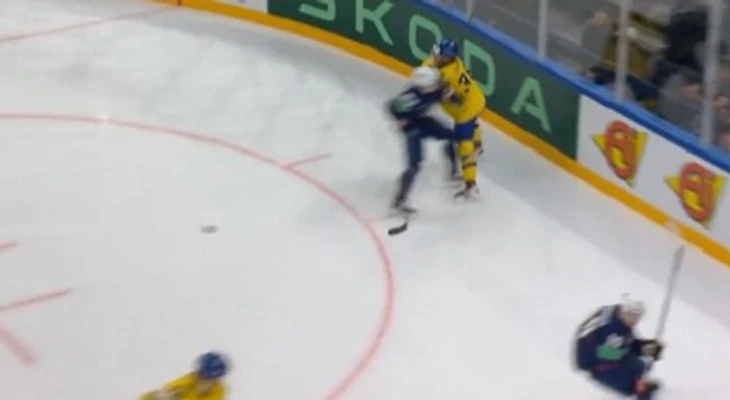 Форвард США Эйссимонт ударил Сандину колено в колено и был удален до конца матча со Швецией