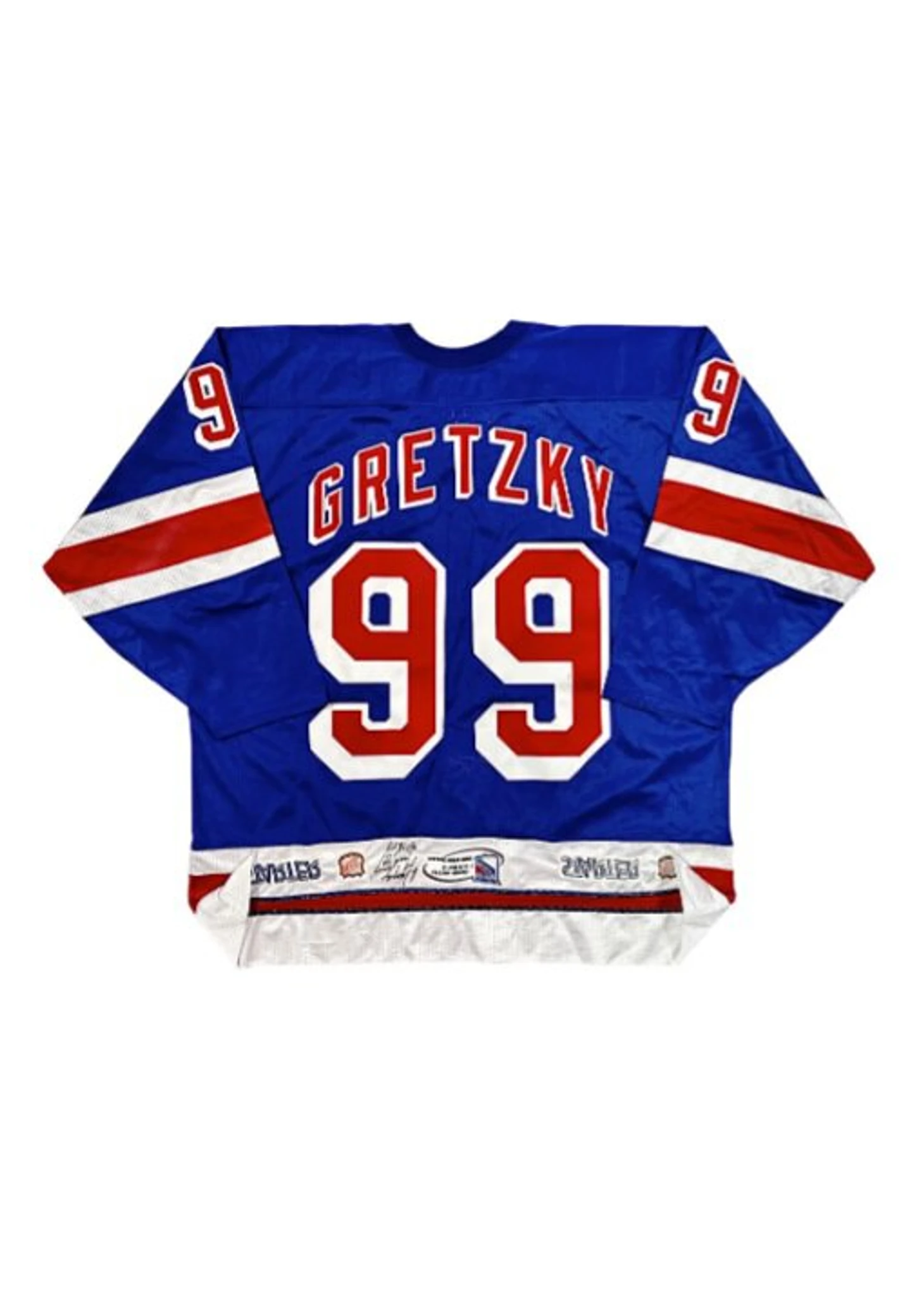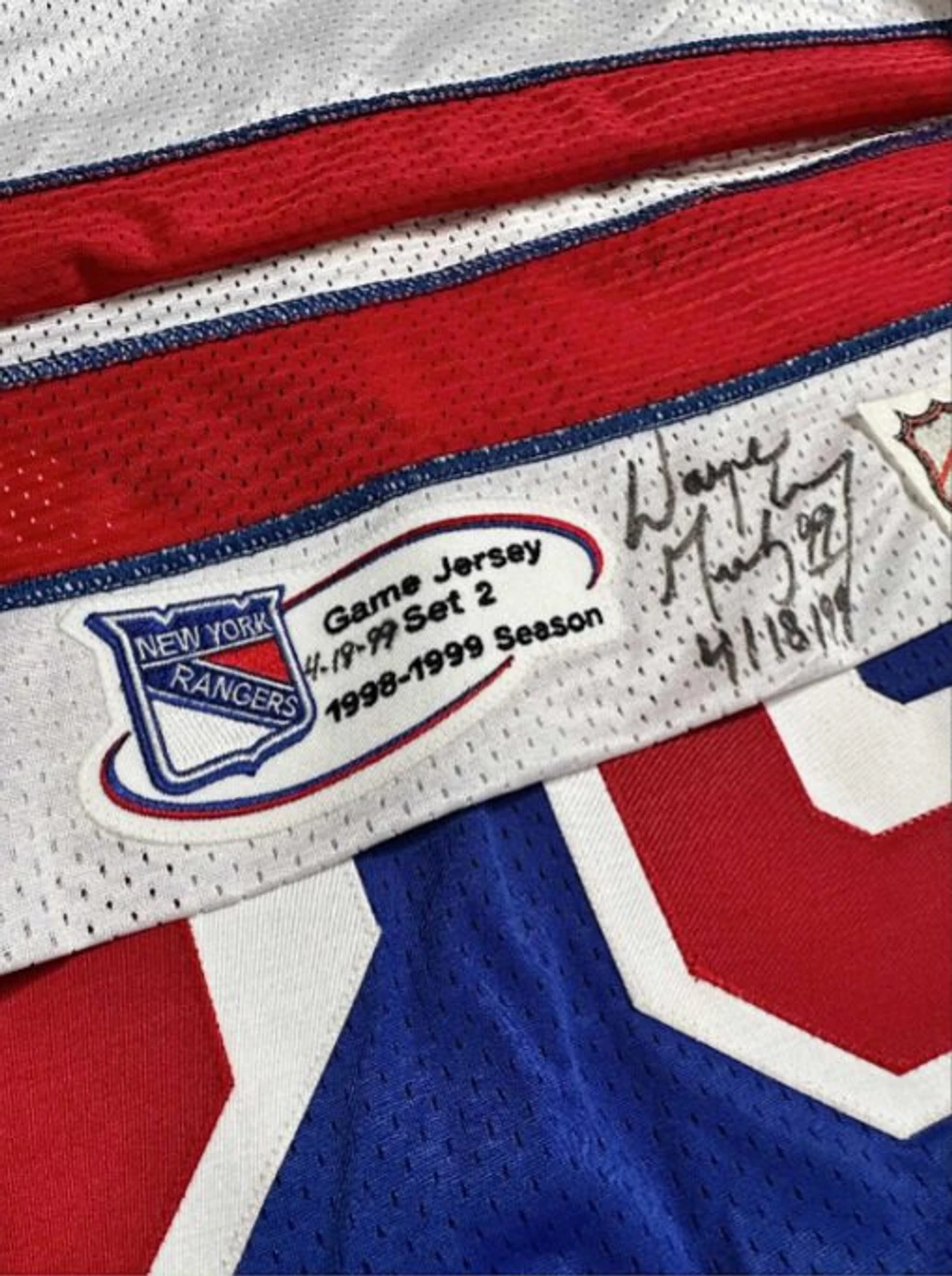На свитере «Рейнджерс» есть подпись Гретцки, а также дата проведения матча.