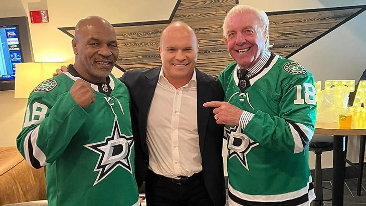 Майк Тайсон поддержал «Даллас» в 4-м матче финала Запада с «Вегасом». Он надел свитер Макса Доми и встретился с его отцом Таем – бывшим тафгаем