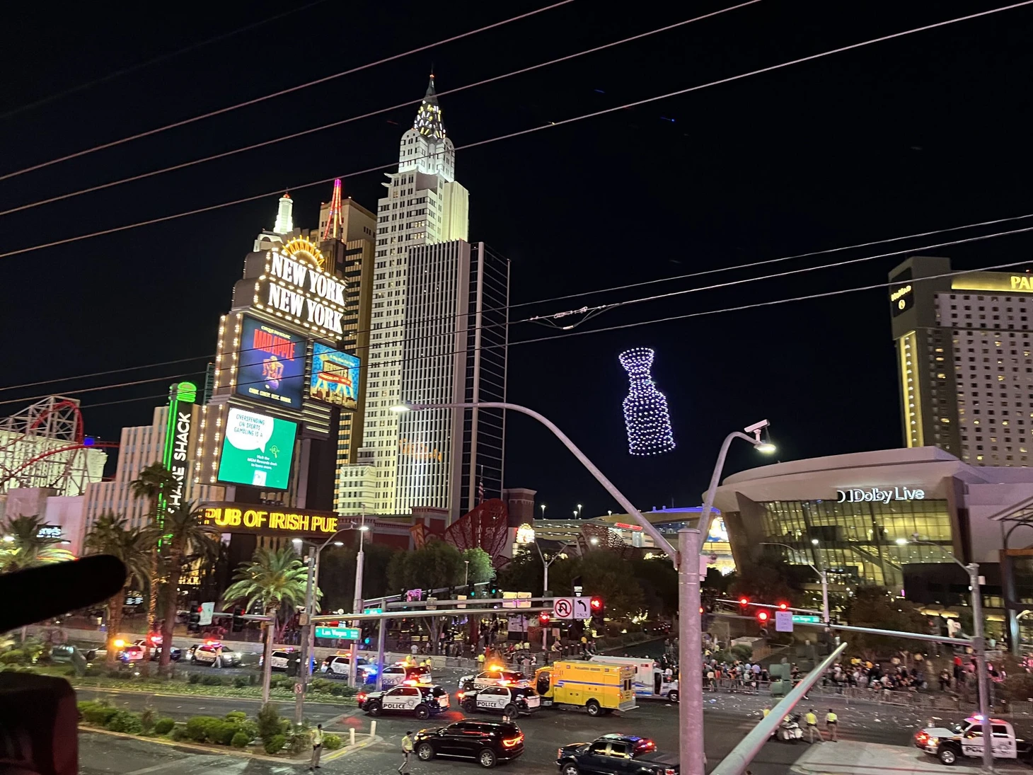 Организаторы при помощи дронов создали в небе очертания Кубка Стэнли и логотипа «Вегаса».