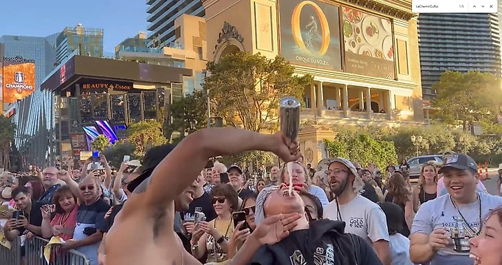Форвард «Вегаса» Колесар напоил болельщика шампанским на чемпионском параде