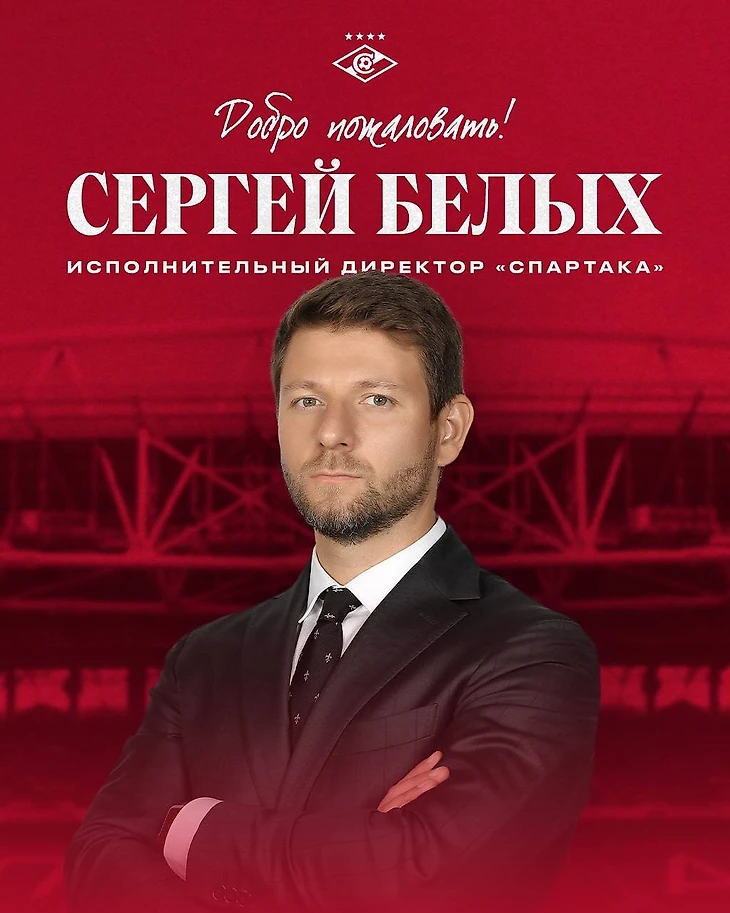 ФК «Спартак» объявил о назначении Сергея Белых исполнительным директором клуба.