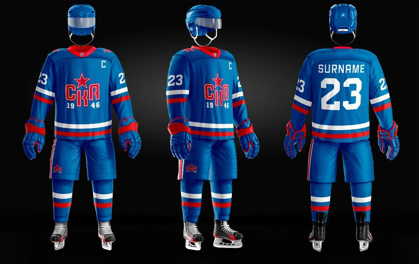Форма «СКА-1946» вдохновлена комплектом основной команды. Молодежка – гордость клуба, многие игроки основы играли в МХЛ именно за «сорок шестых», брали медали и завоевывали Кубок Харламова.