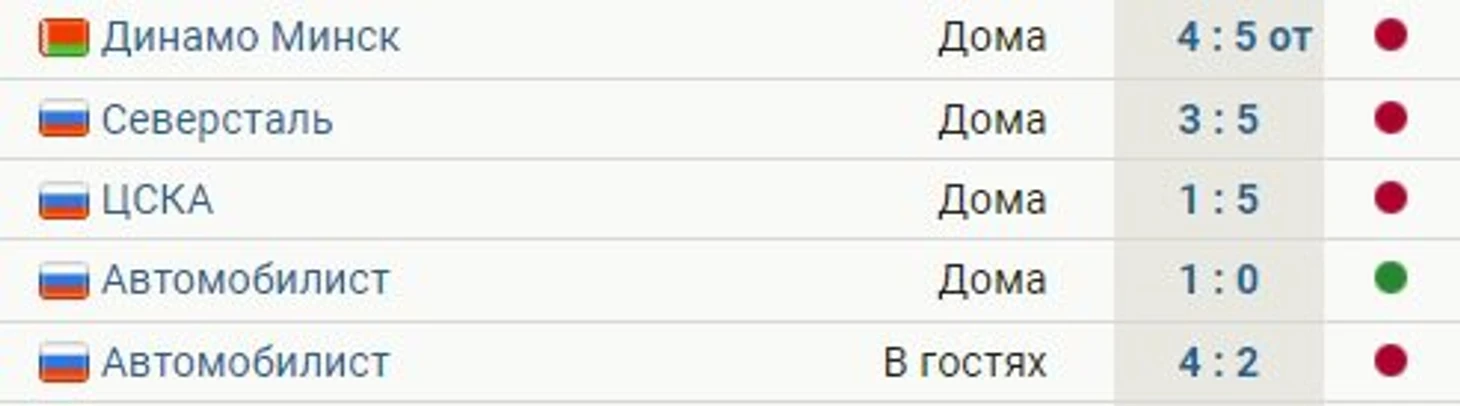 На этом отрезке клуб также проиграл минскому «Динамо» (4:5 ОТ), «Северстали» (3:5) и ЦСКА (1:5).