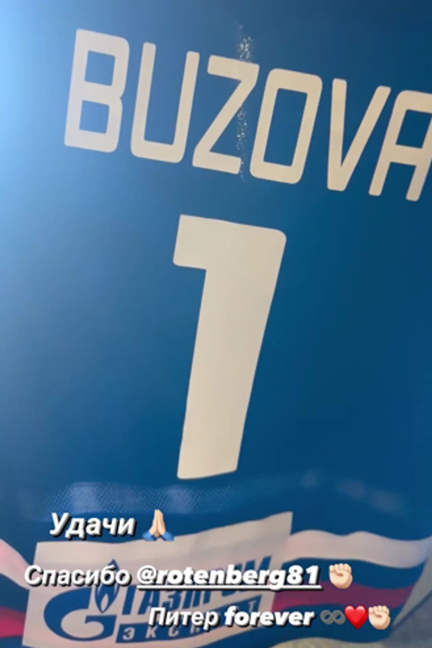 «Спасибо огромное Роману Ротенбергу за такую джерси. У меня такой не было. Я очень приятно удивлена перед концертом. Спасибо. Питер, вперед», – сказала Бузова.