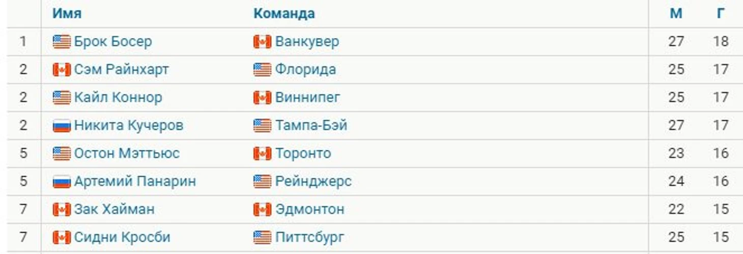 Лидирует Брок Босер из «Ванкувера» – 18 шайб в 27 играх.